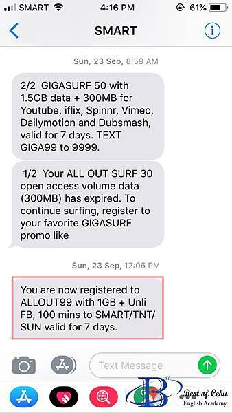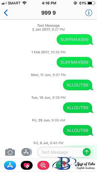 4.傳送簡訊ALLOUT99至8888即可